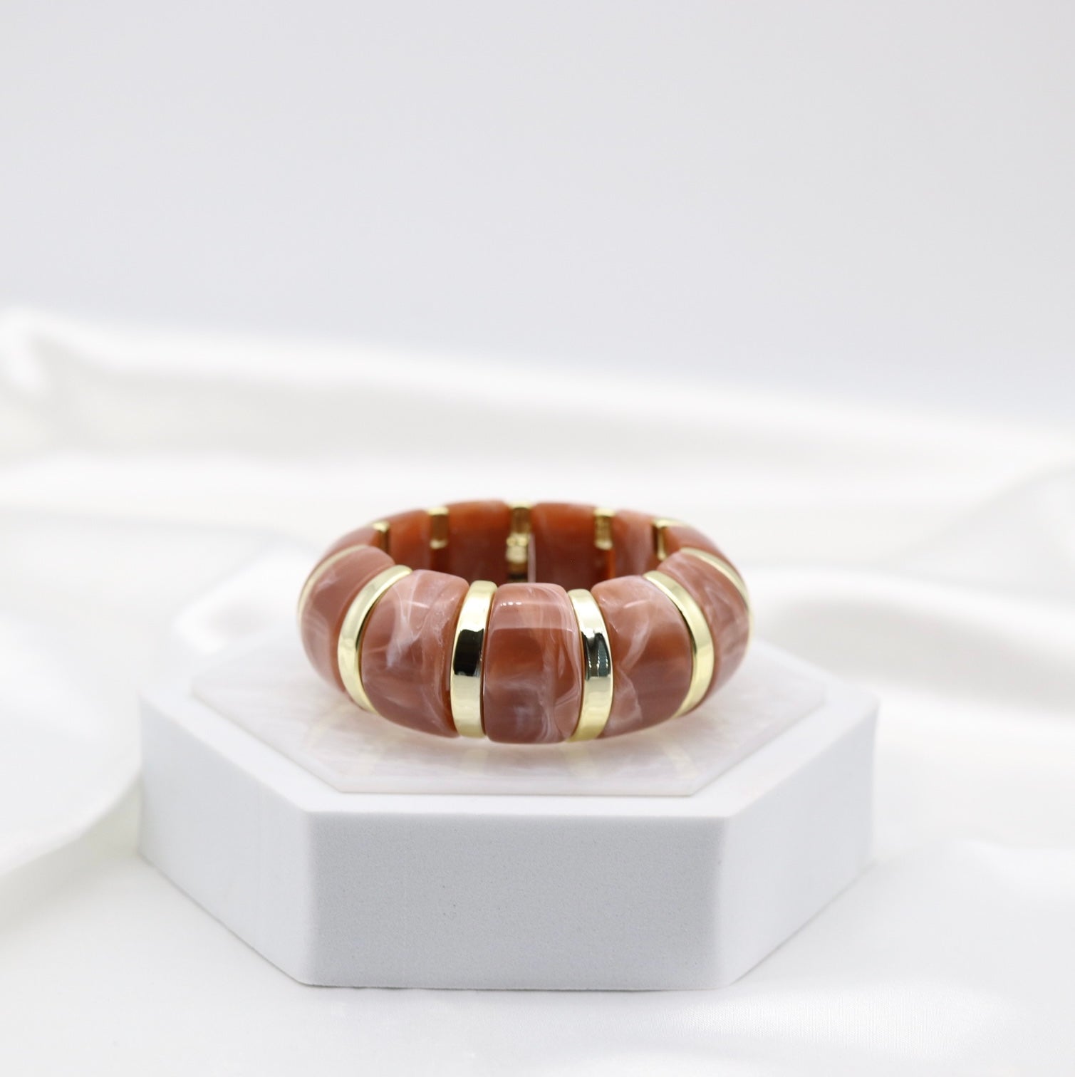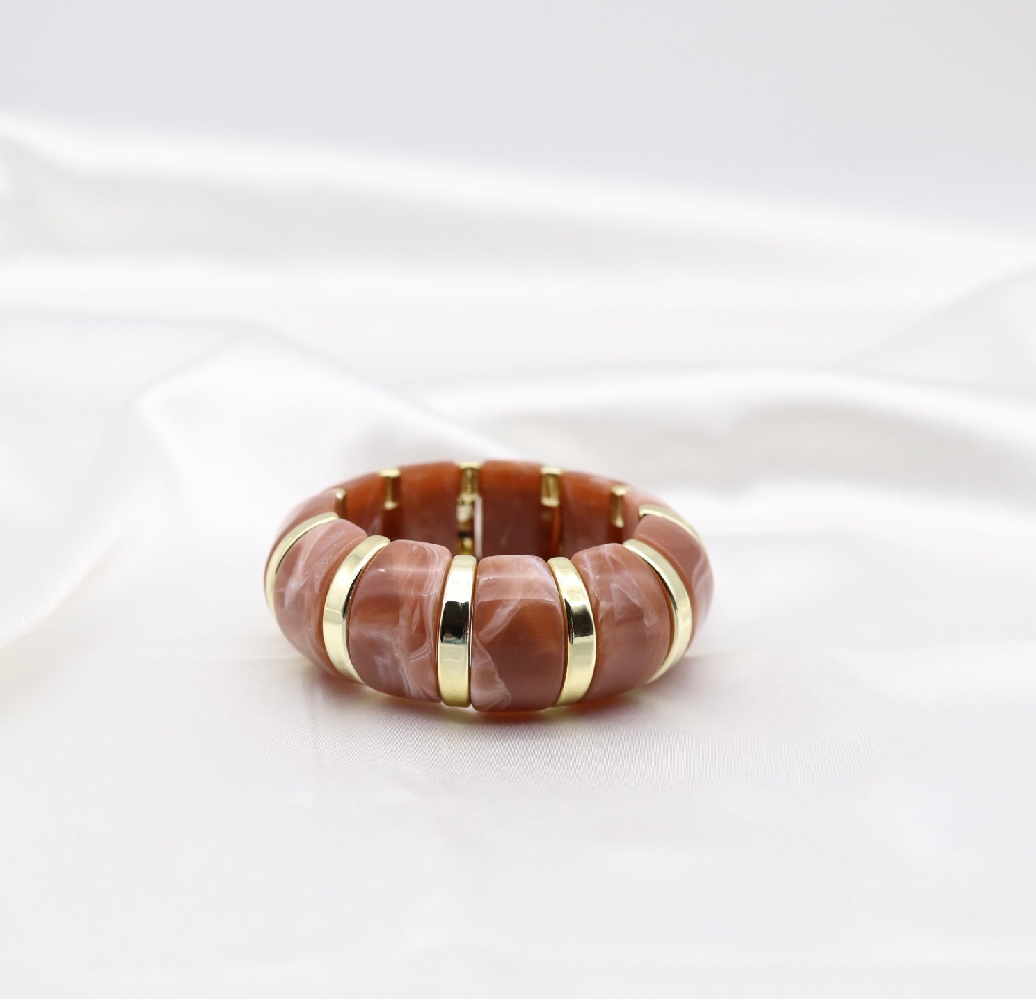 Terracotta Marble Stretch Bracelet with Polished Gold Accents