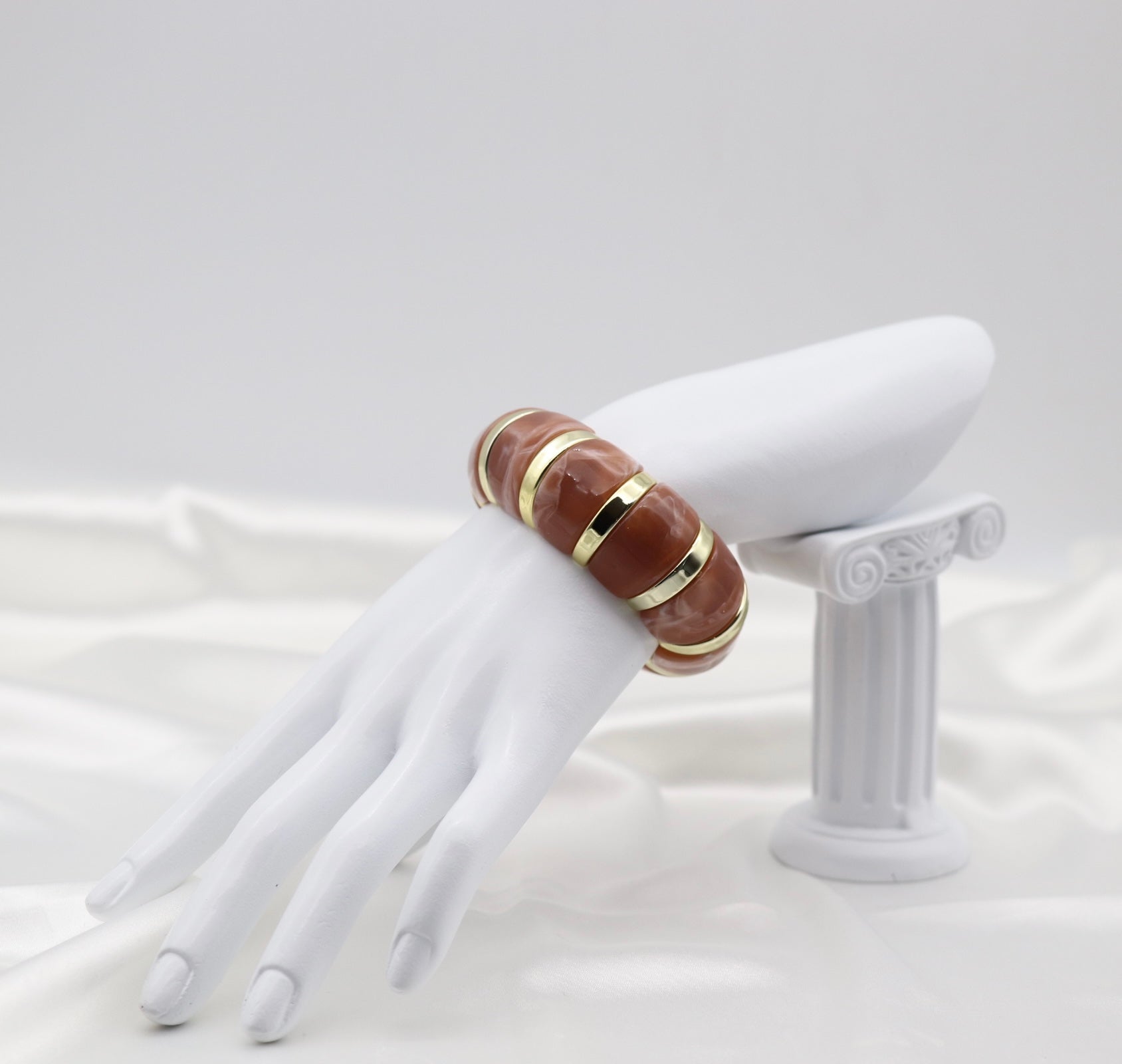 Amber Marble Stretch Bracelet with Polished Gold Accents