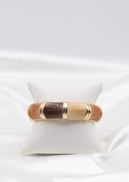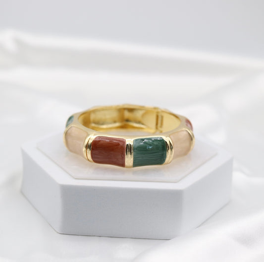 Gold Earth-Tone Multi-Color Enamel Hinged Bangle Bracelet