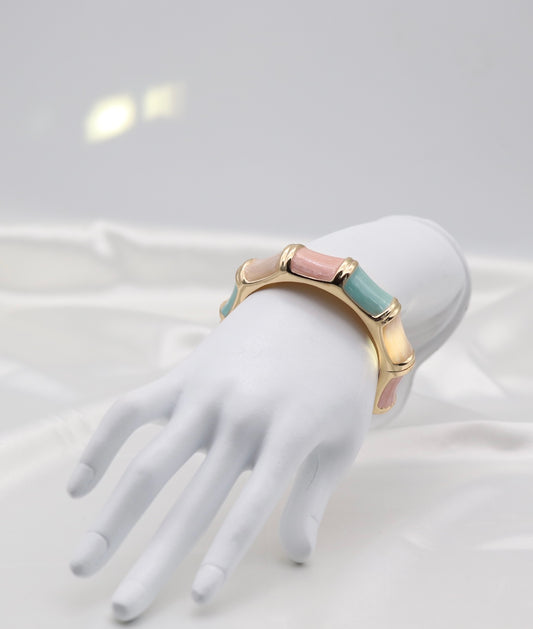 Gold Pastel Multi-Color Enamel Hinged Bangle Bracelet